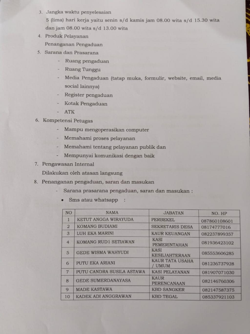 - Standar Pelayanan Minimal Pengurusan Surat Menyurat di Lingkungan Pemerintah Desa Mengening