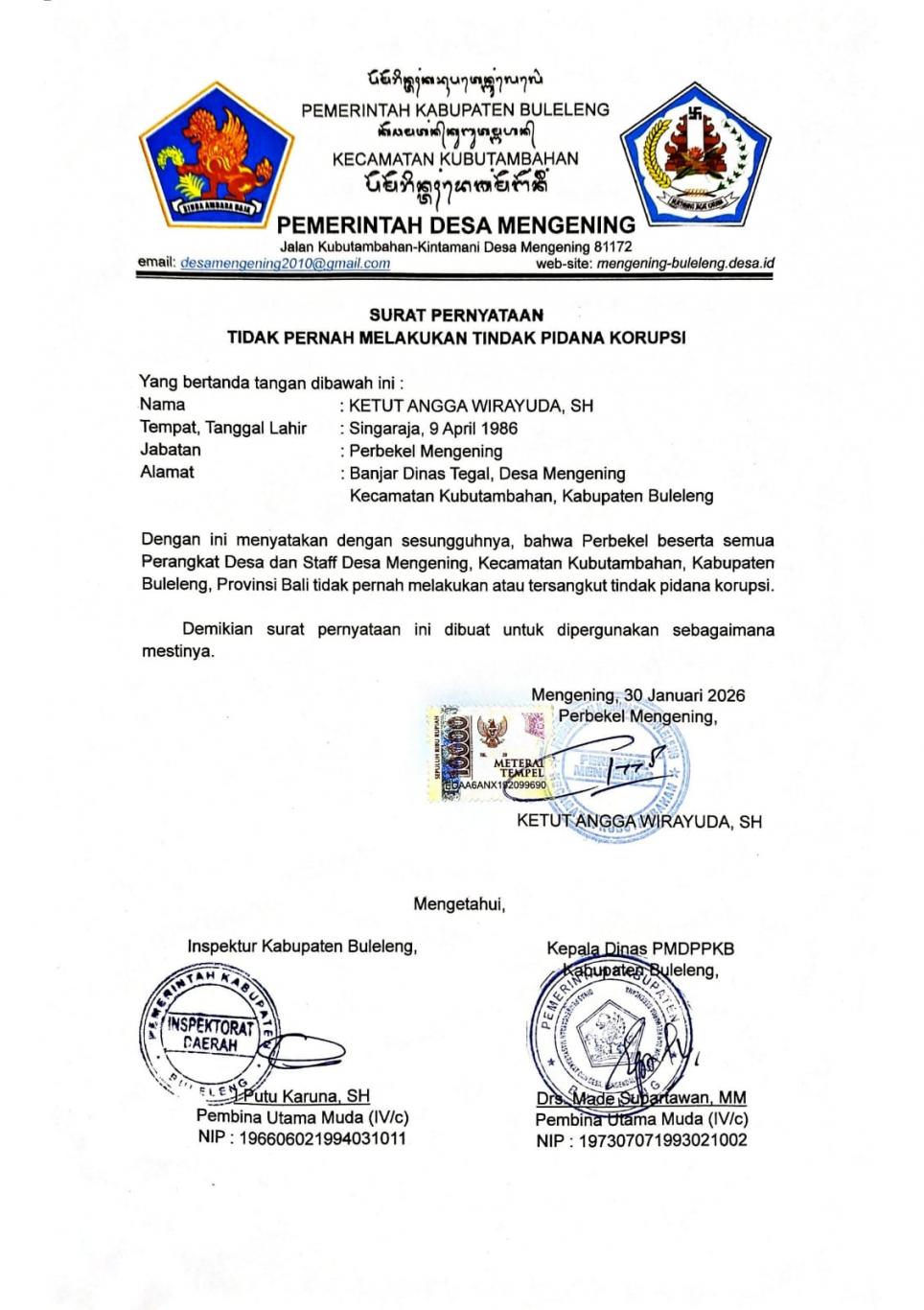 - Standar Pelayanan Minimal Pengurusan Surat Menyurat di Lingkungan Pemerintah Desa Mengening